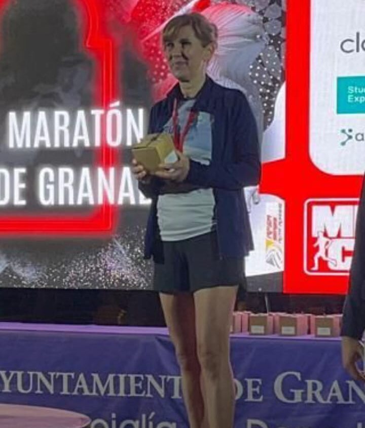 Cuando empecé con Diego, venia de retirarme de una carrera por una sobrecarga importante en la pierna. Él ha sabido frenarme cuando era necesario para recuperarme del todo y dar intensidad a los entrenos cuando tocaba. En poco tiempo he bajado 12'26" minutos mi marca personal en media maratón, y llego a meta de otra forma, disfrutando mucho más las carreras. Mi primer objetivo cumplido con creces, primera de mi categoría en el circuito de Diputación de Granada. No lo hubiera conseguido sin sus entrenamientos. Me dan mucha seguridad. Gracias Diego